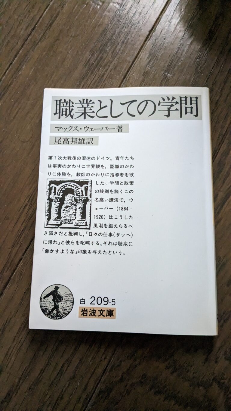 今日は職業としての学問 マックス ウェーバーを読み終えました。
