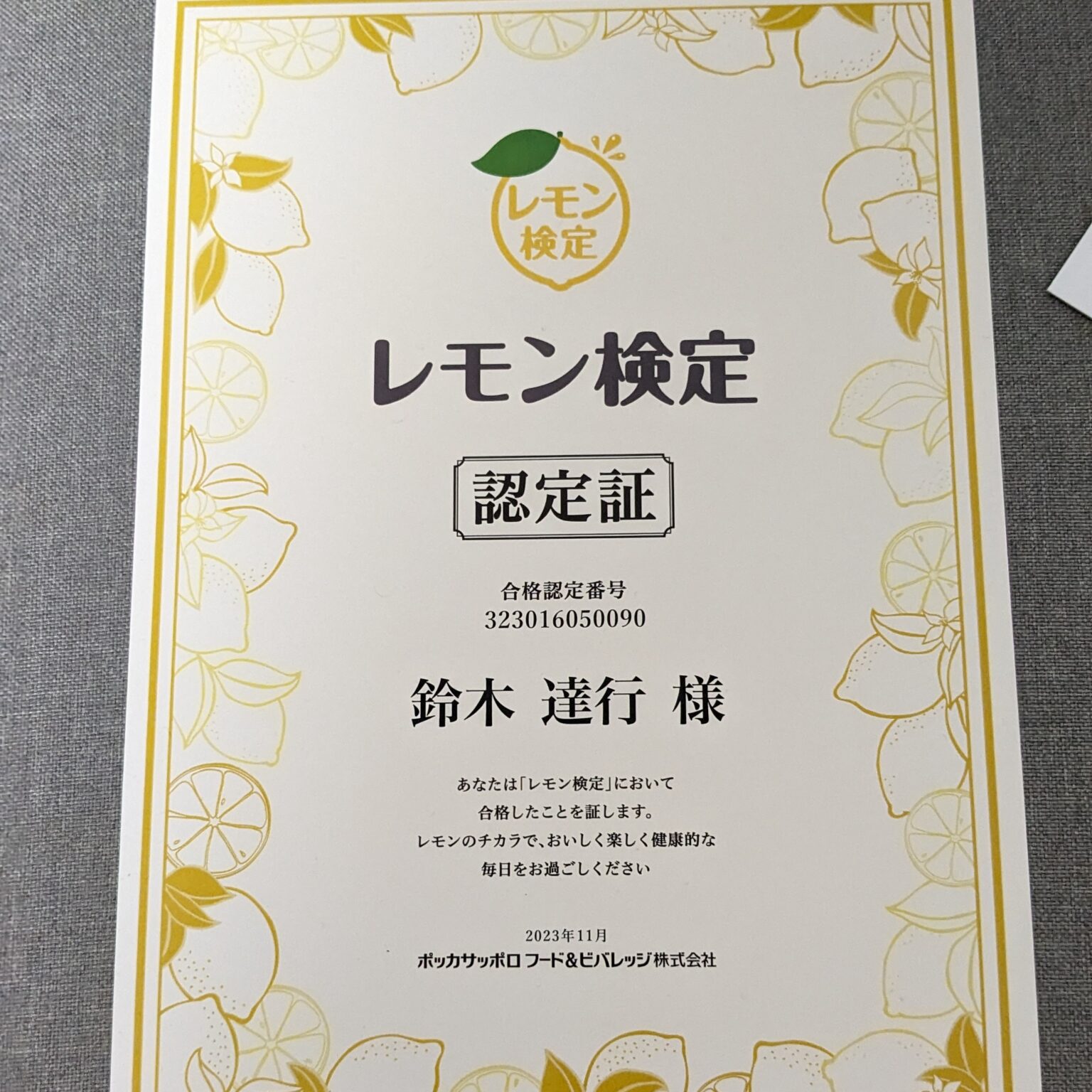 今年の検定試験はレモン検定を受けました。その結果が今日きました。 日常 X 2023.11.122025.05.17こんばんは。秋の気配も感じられないまま、冬が近づいてきましたね。今日はポストを開けてみたら、先日受けたレモン検定の結果が届いていました。無事に合格しました。これが少しでも何かに役立てば嬉しいです。 📅 ご予約専用ページへ 📅 LINEで予約する