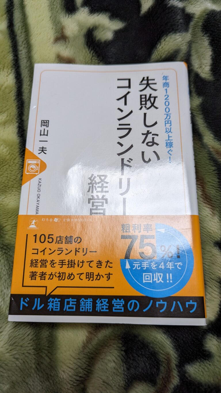 年商1200万円以上稼ぐ! 失敗しないコインランドリー経営を読み終えました。 日常 X 2024.02.052025.05.17おはようございます。今日はこういう本を読み終えました。岡山 一夫 年商1200万円以上稼ぐ! 失敗しないコインランドリー経営コインランドリーの儲けのからくりを知りたくて買いました。この本はメリットの部分しか書かれていないのでデメリットがまるでない感じに思ってしまう本ですね。結局掃除する人を午前中に雇ったり、綺麗に清潔にしていることが大事。壊れた時のリスクなども書いてほしかった。絶対にこのまま経営したら潰れる本だと思う。良い勉強になりました。今日も1日ありがとうございました。 📅 ご予約専用ページへ 📅 LINEで予約する