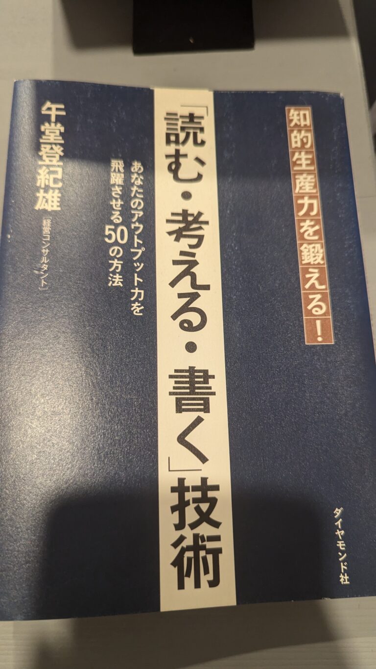 読んだ本は、「午堂登紀雄の知的生産力を鍛える!『読む・考える・書く』技術」です。