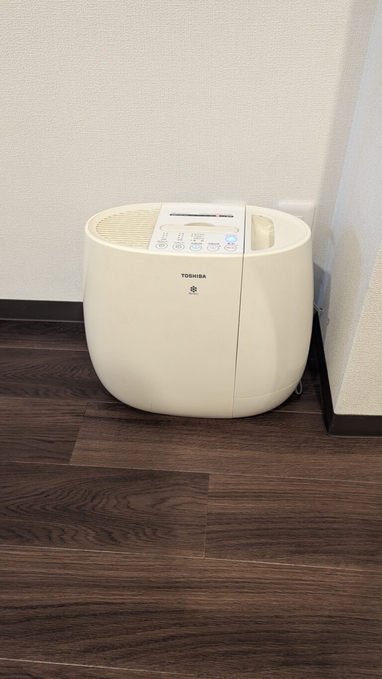 雨で少し加湿器が濡れたので拭いて、置きました。