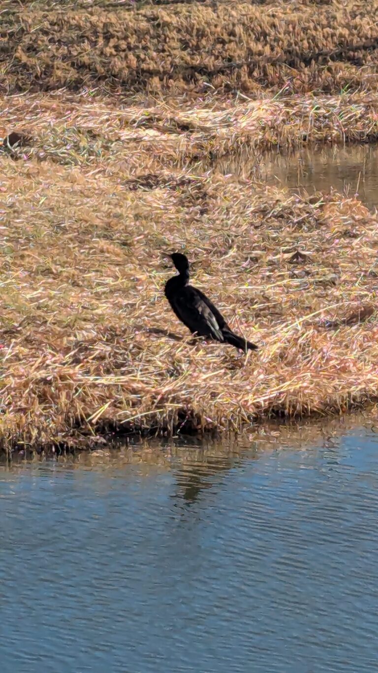 アオサギ、コサギ、シラサギ、カルガモに黒い鳥はカワウだそうです。