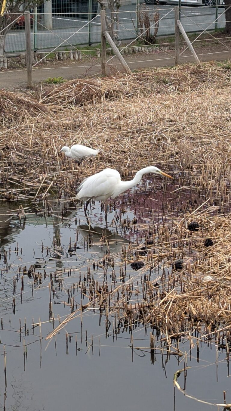 ハス池は、シラサギとコサギ、カルガモ2羽がいました。