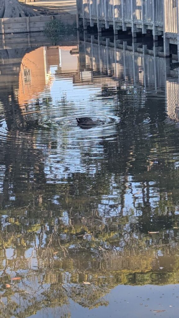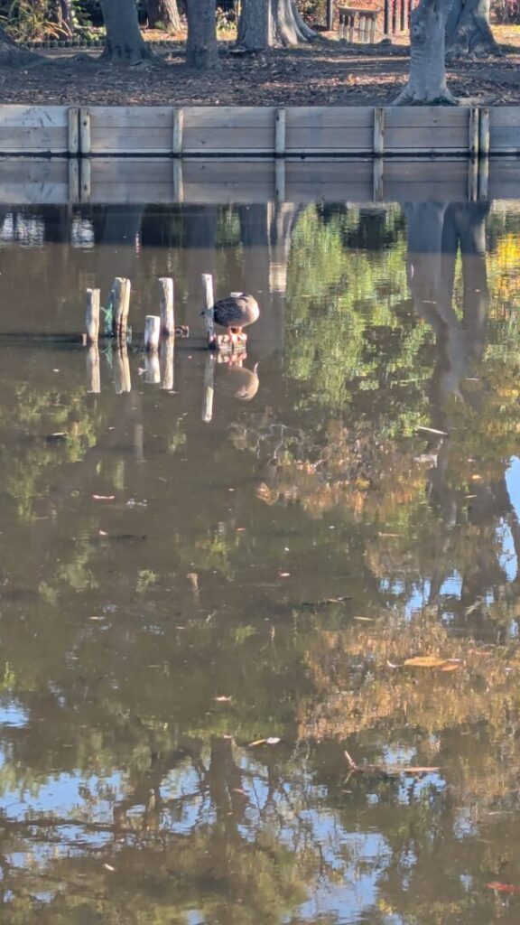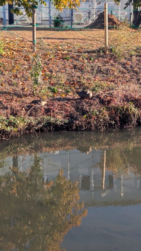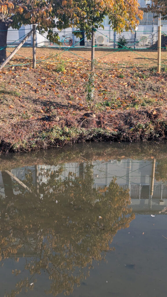 今朝のハス池にはカルガモが数羽。