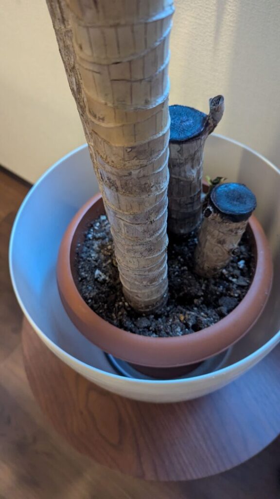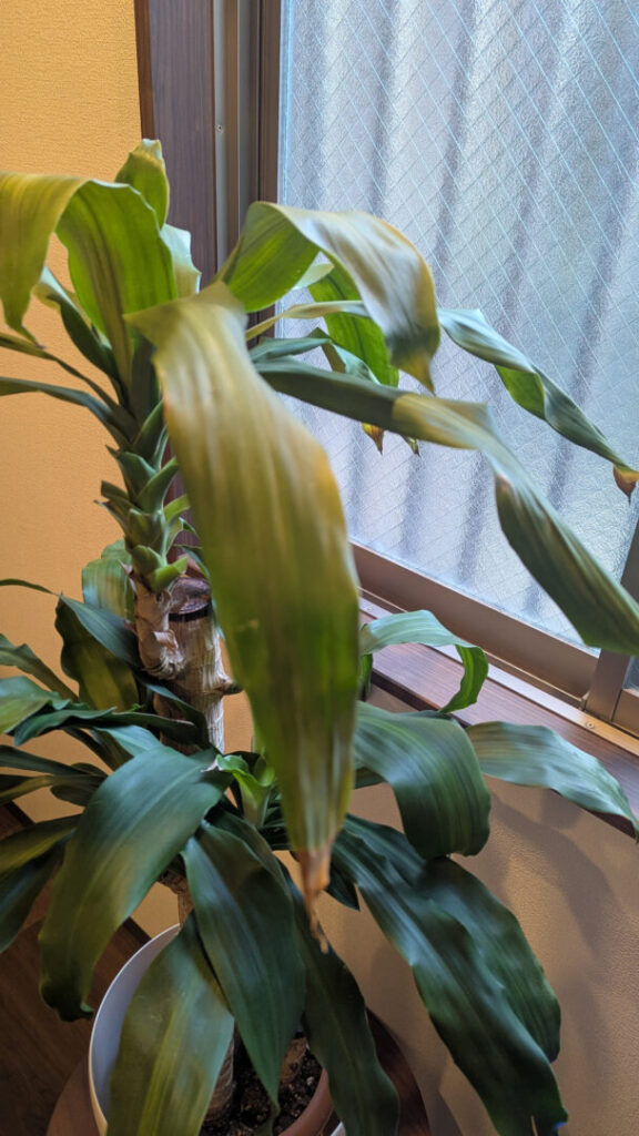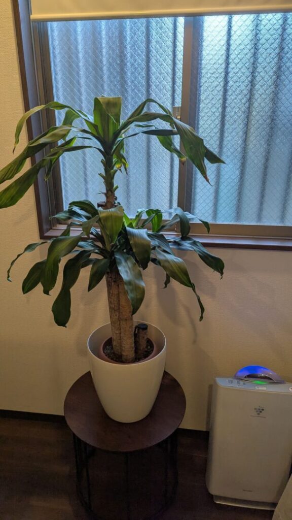 日が当たる奥の場所に移動しましたが、葉っぱを切ってスッキリさせすぎたかもしれません…。