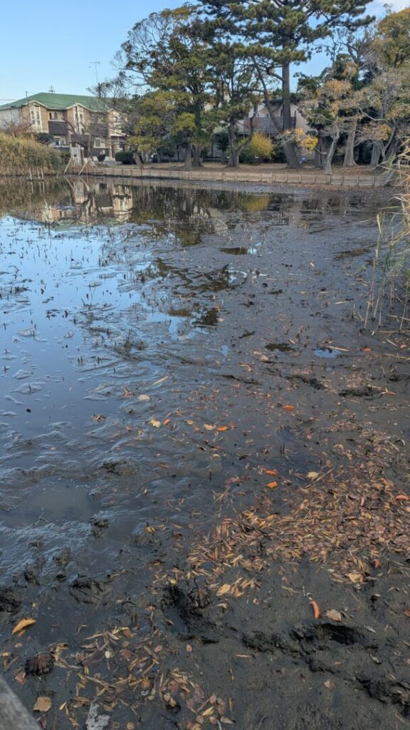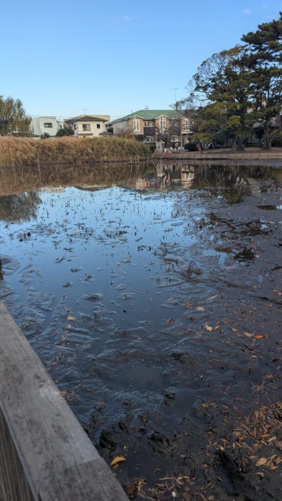 もう一つの池にもいるだろうと見に行ったんですが、水抜きされていて空っぽ。