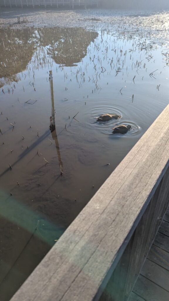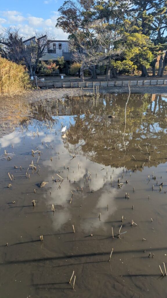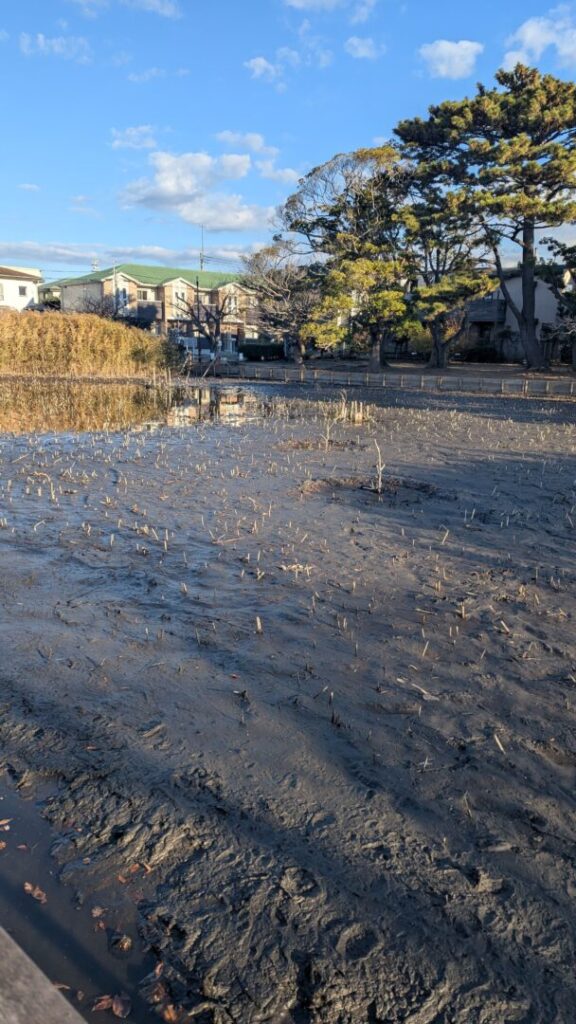 第二ハス池は水抜きしているのか、水位がどんどん下がっています。