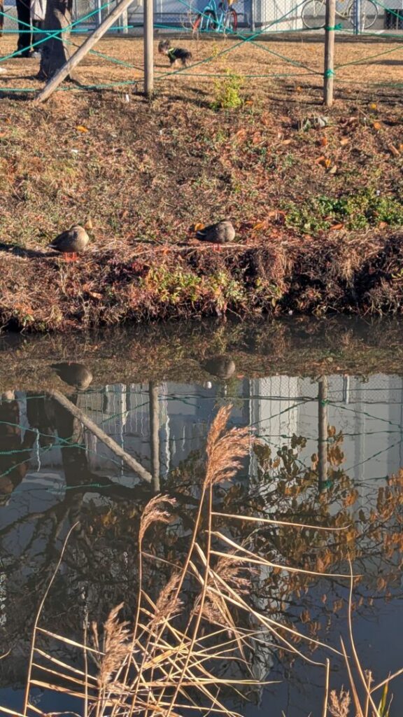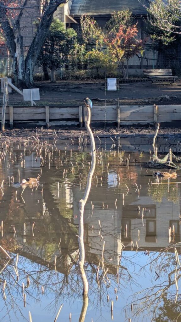 カルガモもいて、第二ハス池には雨の影響か水が少し溜まっていました。