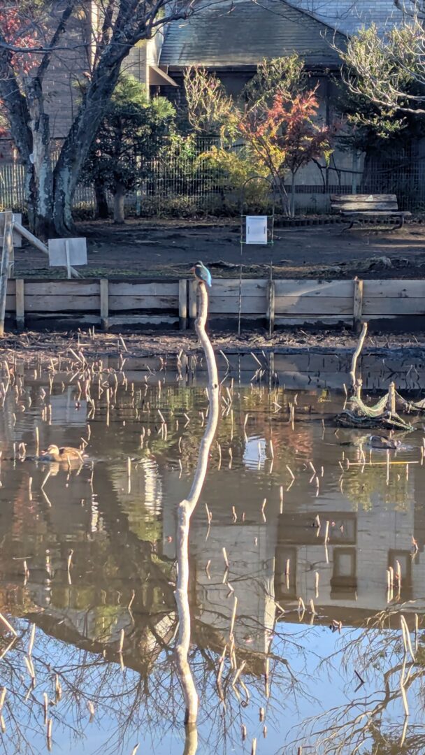 カルガモもいて、第二ハス池には雨の影響か水が少し溜まっていました。