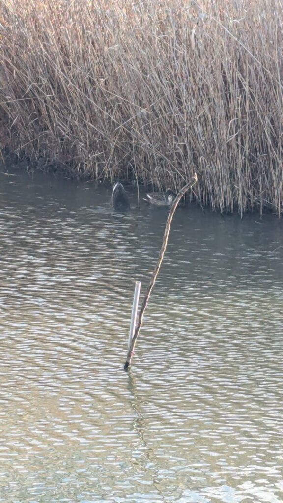 今朝のハス池はカルガモがいました。