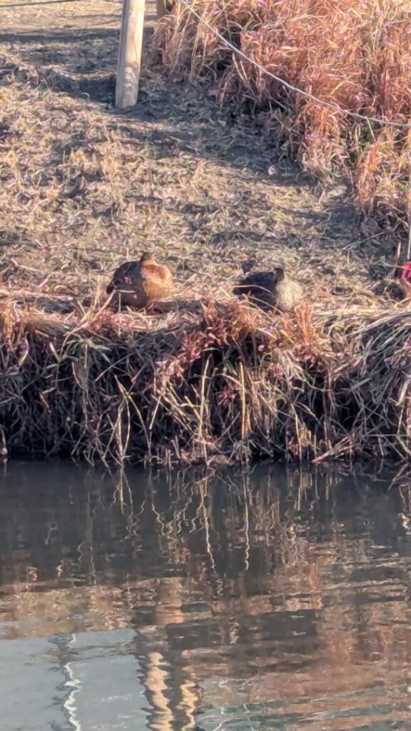 よく見ると、いつもより少し茶色っぽいカルガモもいて、