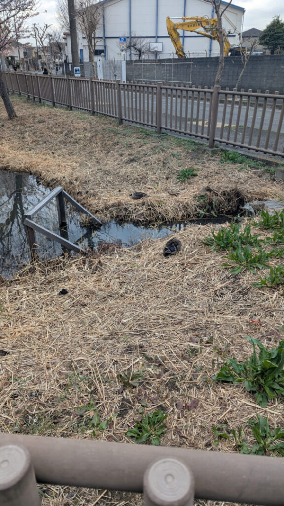 今日は池ではなく、近くの陸地でのんびり寝ていました。